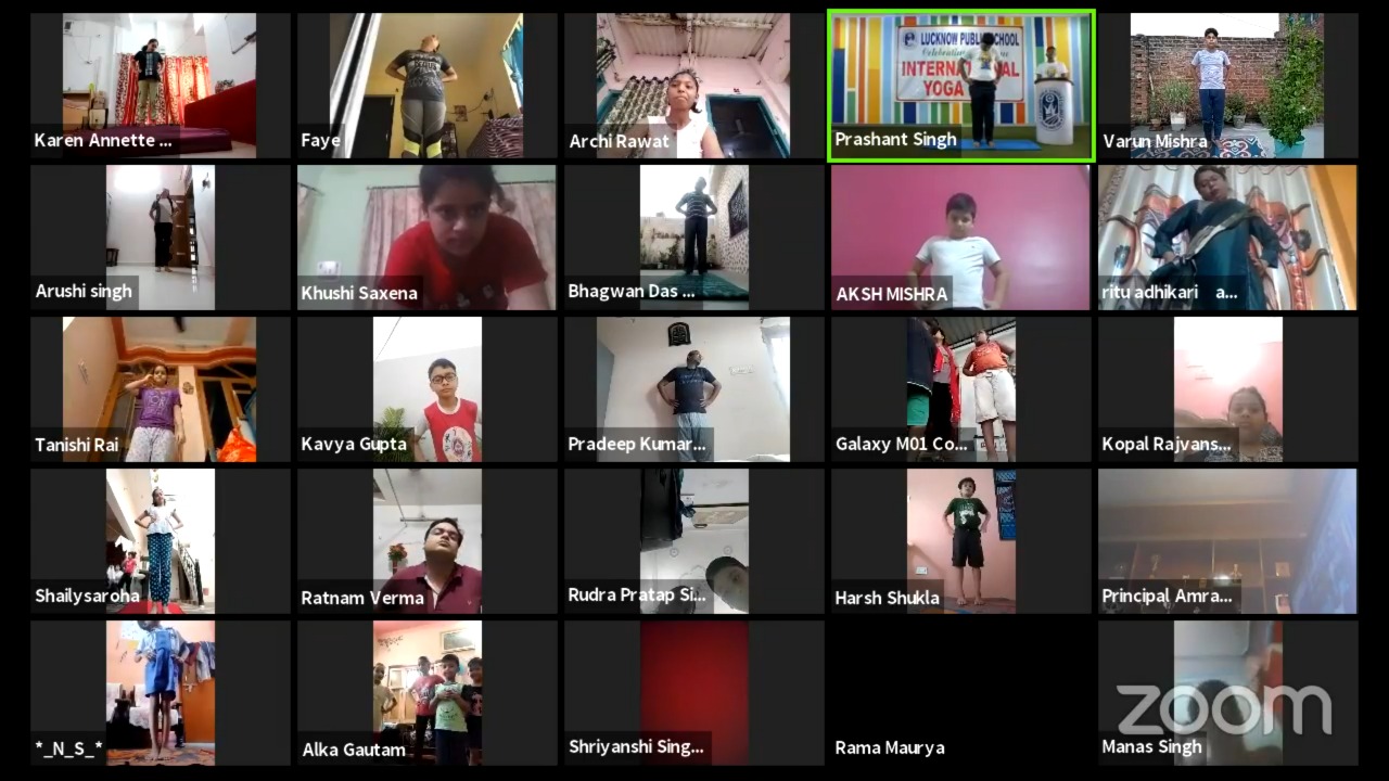 लखनऊ आज अंतरराष्ट्रीय योग दिवस के अवसर पर लखनऊ पब्लिक स्कूल्स एंड कॉलेजेस के प्रबंधतंत्र के अधिकारियों , सभी शाखाओं की प्रिंसिपल , शिक्षक शिक्षिकाओं एवं हजारों बच्चों ने अपने-अपने घरों में योग किया। इस ऑनलाइन योग शिविर में प्रशिक्षित योग शिक्षक रंजीत कटियार तथा अमित कुमार अवस्थी ने जूम एप के माध्यम से योग का प्रशिक्षण दिया, जिसमें हजारों बच्चे ऑनलाइन जुड़कर योग करते हुए दिखाई दिए।