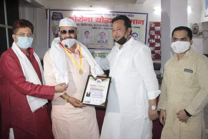 कोरोना योद्धा सम्मान समारोह के अध्यक्ष सैय्यद महमुदुर्रहमान ‘पम्मू’ प्रदेश अध्यक्ष सर्व समाज व्यापार मंडल ने की।कार्यक्रम के मुख्य अतिथि के रूप में श्री प्रदीप सिंह बब्बू प्रदेश अध्यक्ष अखिल भारतीय क्षत्रिय महासभा, विशिष्ट अतिथि के रूप में मुरलीधर आहूजा समाजसेवी एवं अब्दुल वहीद महामंत्री उत्तर प्रदेश जिला मान्यता प्राप्त पत्रकार एसोसिएशन रहे।कार्यक्रम के आयोजक रिपोर्टर कवरेज के संपादक इमरान खान ने आए हुए अतिथियों का स्वागत करते हुए अंगवस्त्र एवं स्मृति चिन्ह देकर सम्मानित किया।