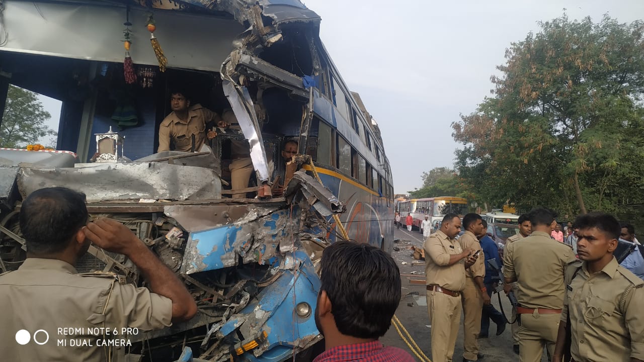 टक्कर इतनी जबरदस्त थी कि बस का अगला हिस्सा बुरी तरह से छतिग्रस्त हो गया बस में फंसे लोगों की चीख पुकार सुनकर स्थानीय लोग मौके पर पहुंचे और घायलों को निकालने का प्रयास करने लगे तत्काल पुलिस को सूचना दी गयी।