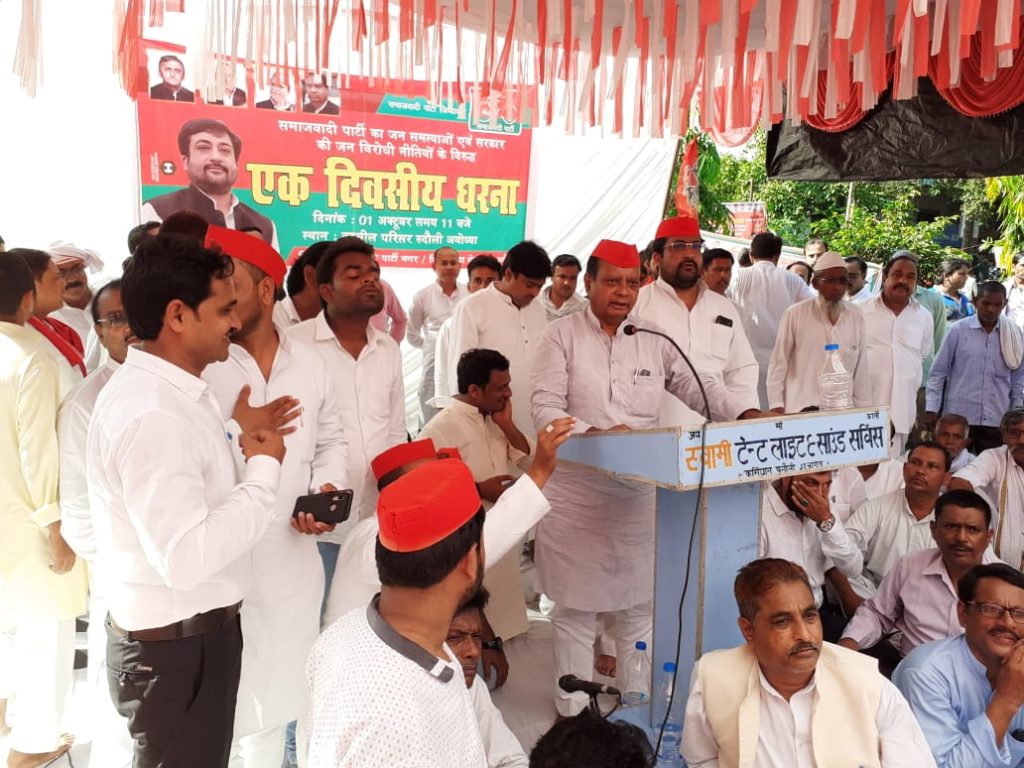 रूदौली अयोध्याl रूदौली तहसील में आज सपा का एक धरना प्रदर्शन आयोजित किया गया।सभी क्षेत्रीय नेताओं ने बारी बारी से केंद्र तथा प्रदेश की भाजपा सरकार की जमकर बखिया उधेड़ी।नम्बर जब पूर्व विधायक अब्बास अली जैदी(रुश्दी) का आया तो उन्होंने सबसे पहले क्षेत्रीय विधायक राम चन्द्र यादव के बारे में बोलते हुए कहा राम चन्द्र यादव ने जब भी जनहित के मुद्दे उठाये तो समाजवादियों ने उसकी सराहना की।