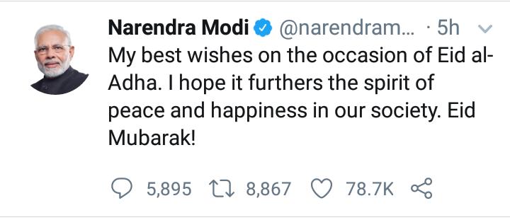 राष्ट्रपति रामनाथ कोविंद और प्रधान मंत्री नरेंद्र मोदी ने ट्वीट कर देश वासियों को दी ईद उल अज़हा की बधाई