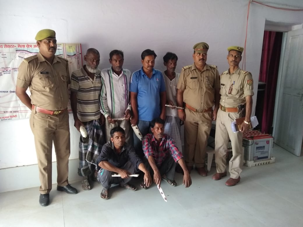 हरिहरपुर थाना कोतवाली रुदौली जनपद अयोध्या को दिनांक 17 मार्च 19 को रात्रि में उप निरीक्षक संतोष कुमार त्रिपाठी उप निरीक्षक प्रदीप कुमार सिंह उप निरीक्षक गणेश पांडे उप निरीक्षक अशोक कुमार पाठक आरक्षी धीरेंद्र कुमार थाना कोतवाली रुदौली जनपद अयोध्या द्वारा गिरफ्तार किया गया अभियुक्त गणो के कब्जे से 2 अदद चौपड़ 2 अदद चाकू एक बंडल रस्सी बरामद हुआ अभियुक्तों को 14 दिवस की न्यायिक अभिरक्षा में जेल भेजा गया।