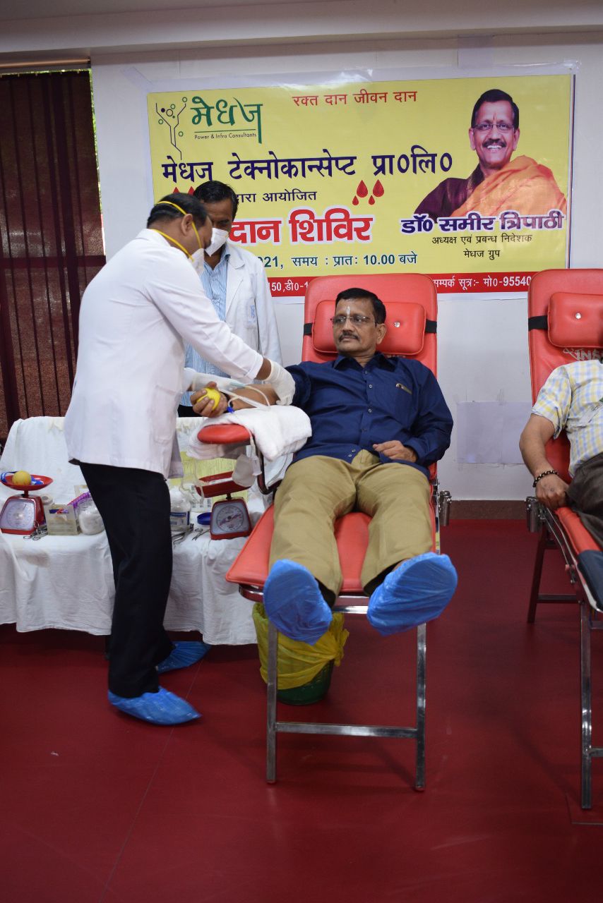 लखनऊ। पॉवर, वाटर, आईटी व सड़क निर्माण की अग्रणी सलाहकार कंपनी मेधज टेक्नोकांसेप्ट प्रा.लि. के सीएमडी डॉ. समीर त्रिपाठी के नेतृत्त्व में एक स्वैच्छिक रक्तदान शिविर का आयोजन किया गया। यह रक्तदान शिविर कंपनी के पॉवर सेक्टर चौराहा कानपुर रोड स्थित मेधज टावर में आयोजित किया गया। जिसमे कंपनी के मुख्यालय स्थित समस्त अधिकारियों व कर्मचारियों ने रक्तदान किया।