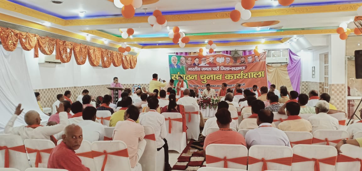जिसके बाद 19 व 20 अक्टूबर को मंडल अध्यक्षों का चुनाव होगा।कार्यशाला में मुख्य अतिथि के रुप में उपस्थित प्रदेश महामंत्री व लखनऊ जिले के प्रभारी विद्यासागर सोनकर ने  संगठन के चुनाव को लेकर अपने पूर्व अनुभवों को कार्यकर्ताओं से साझा किए।मुख्य वक्ता प्रदेश उपाध्यक्ष जेपीएस राठौर ने अपने संबोधन में कहा कि संगठन के चुनाव को पूरी पारदर्शी तरीके के साथ कराना है।उन्होंने चुनाव की प्रक्रिया सार्वजनिक स्थल पर कराने की सलाह दी।इसके अलावा सरोजिनी नगर विधानसभा में जो शहरी क्षेत्र के 3 मंडल है उनमें पहले की तरह ही नगर के द्वारा चुनावी प्रक्रिया कराए जाने की जानकारी जेपीएस राठौर ने दी।जिस पर जिला चुनाव अधिकारी अशोक सिंह ने लखनऊ जिले के 20 मंडलों से सरोजनी नगर के 3 मंडलों को घटाते हुए जिले में 17 मंडलों को जिले की तरफ से चुनावी प्रक्रिया में रखा है।इसके साथ ही 4 मंडलों के चुनाव अधिकारियों को परिवर्तित करते हुए निगोहा मंडल में चुनाव अधिकारी रहे रामकिशोर गुप्ता की जगह राम सजीवन मौर्य को चुनाव अधिकारी बनाया है।मोहनलालगंज में कृष्ण शास्त्री की जगह सीमा स्वर्णकार चुनाव अधिकारी होंगी।काकोरी मंडल में राकेश मणि त्रिपाठी की जगह सत्येंद्र श्रीवास्तव को चुनाव अधिकारी बनाया गया है।मलिहाबाद मंडल में अमित तिवारी की जगह राम निहोर विश्वकर्मा को चुनाव अधिकारी बनाया गया है।कार्यशाला का समापन जिला अध्यक्ष रामनिवास यादव ने सभी को बधाई देते हुए कार्यशाला का समापन किया।इसके अलावा कार्यशाला में जिला सह चुनाव प्रभारी मुकुंद मिश्रा,जिला सदस्यता सत्यापन प्रभारी सुधीर सिंह सिद्धू,मोहनलालगंज सांसद कौशल किशोर,मलिहाबाद विधायक जयदेवी,बख्शी का तालाब विधायक अविनाश त्रिवेदी,जिला सदस्यता प्रभारी विजय प्रताप सिंह सहित मंडलों में बनाए गए चुनाव अधिकारी सह चुनाव अधिकारी व मंडल अध्यक्ष गण उपस्थित रहे।