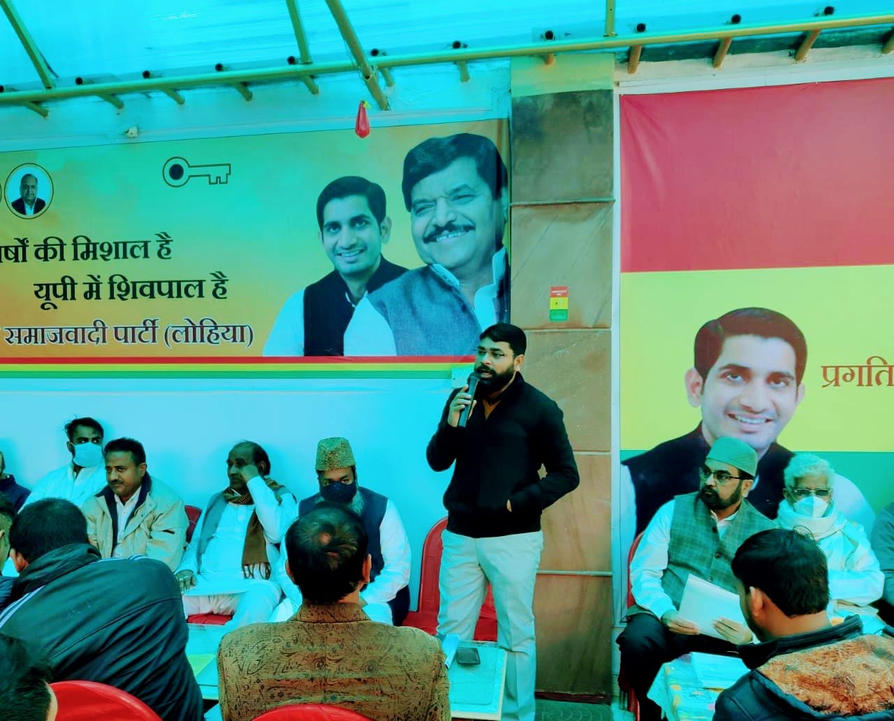नगर अध्यक्ष श्री मुर्तज़ा अली ने सभी का स्वागत करते हुए पदाधिकारियों को नियुक्ति पत्र देकर उनकी ज़िम्मेदारियों से अवगत कराते हुये कहा कि विधानसभा चुनाव में हमारी पार्टी का गठबंधन समाजवादी पार्टी के है और राष्ट्रीय अध्यक्ष माननीय श्री शिवपाल यादव जी के निर्देशों का पालन करते हुए समाजवादी पार्टी के सभी उम्मीदवारों को पूरी ताक़त से सहयोग कर जिताना है । मुख्य अतिथि के तौर महिला समाजवादी पार्टी की महिला सभा के राष्ट्रीय अध्यक्ष जूही सिंह कार्यक्रम में उपस्थित रहे इसी क्रम में लखनऊ पूर्व के प्रत्याशी श्री अनुराग भदौरिया जी का पदाधिकारियों से परिचय कराते हुए क्षेत्र में इंदिरा नगर से सटे क्षेत्रों में भ्रमण कराया जहाँ नागरिकों ने जोश के साथ उनका स्वागत किया ।श्री अनुराग भदौरिया जी ने सभी का आभार जताते हुए क्षेत्र के लिये कार्य करने का वचन दोहराया । पश्चिमी विधानसभा क्षेत्र के प्रत्याशी अरमान खान के प्रतिनिधि के रूप में भानु प्रताप सिंह उपस्थित रहे सभा को मुस्लिम वेल्फ़ेयर सोसायटी के सदर जनाब क़ाज़ी अहमद रज़ा साहब एवं महासचिव श्री साबिर ख़ान साहब ने सम्बोधित करते हुए पूर्ण समर्थन दिया ।बैठक को ख़ालिद इस्लाम,बदरूल हसन, कैंट विधानसभा अध्यक्ष कन्हैया लाल यादव मध्य विधानसभा अध्यक्ष मोहम्मद आमिर पूर्वी विधानसभा अध्यक्ष जावेद सिद्दीकी पश्चिमी विधानसभा अध्यक्ष संजय वर्मा रजनी तिवारी आशीष शर्मा राजू जायसवाल राणा नीरज श्रीवास्तव रमेश यादव पंकज श्रीवास्तव शादाब सिद्दीकी मोहम्मद कैफ नगर उपाध्यक्ष अमन मिश्रा लाल जी शुक्ला अतहर सिद्दीकी मिर्जा एहसान बैग दिलीप कुमार मिश्रा मोहम्मद सईद सिद्दीकी मोहम्मद अलीम शेख अफजाल अहमद अयूब अंसारी उत्कर्ष तिवारी सतीश कुमार कलाम सिद्दीकी जुबेर सलमान आलम मूसा हसन युसूफ सिद्दीकी यश चतुर्वेदी समीर सिद्दीकी कुद्रतुल्लाह खान राजेश्वर मिश्रा और राजू भाई शेख मुजीब उर रहमान–आदि ने संबोधित किया ।