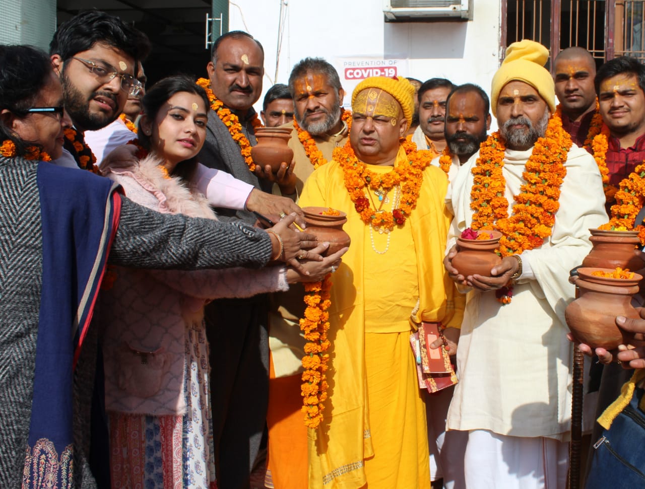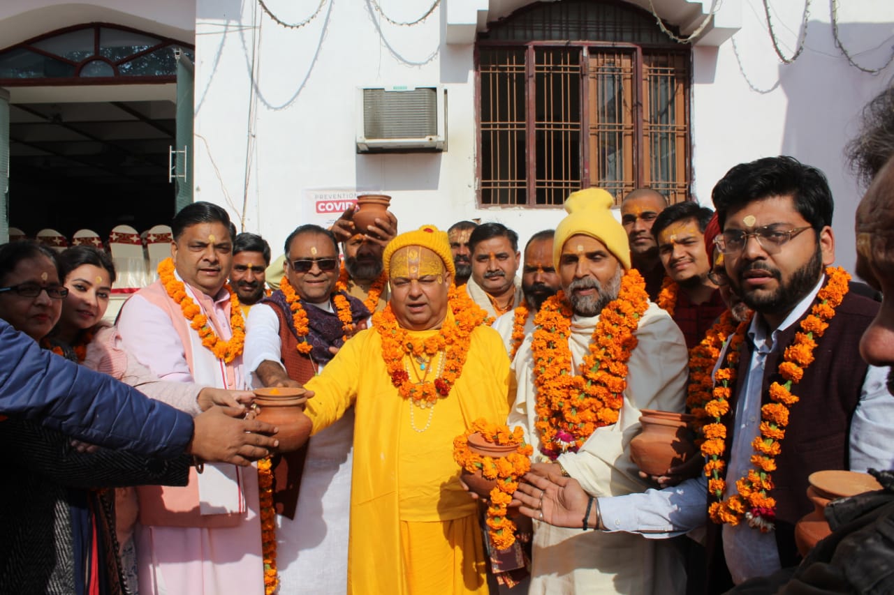 लखनऊ 11 जनवरी। अयोध्या से आए मंहत गणों का अभिनंदन सोमवार को उत्तर प्रदेश वैश्य व्यापारी महासभा ने किया। निराला नगर के शिवमंदिर परिसर में हुए इस महा संत समागम में महासभा का प्रदेश अध्यक्ष-युवा अभिषेक अग्रवाल ने आदिगंगा मां गोमती का मंगल कलश, मकर संक्रान्ति पर संगम स्थल में प्रवाहित करने के लिए महंत गणों को सौंपा। इस अनुष्ठान का उद्देश्य कोरोना से मुक्ति, राष्ट्र कल्याण और आध्यात्मिक उन्नति है। इस अवसर पर प्रतिष्ठित चिकित्सक, हिन्दू संगठन और सामाजिक कार्यकर्ता मौजूद रहे।