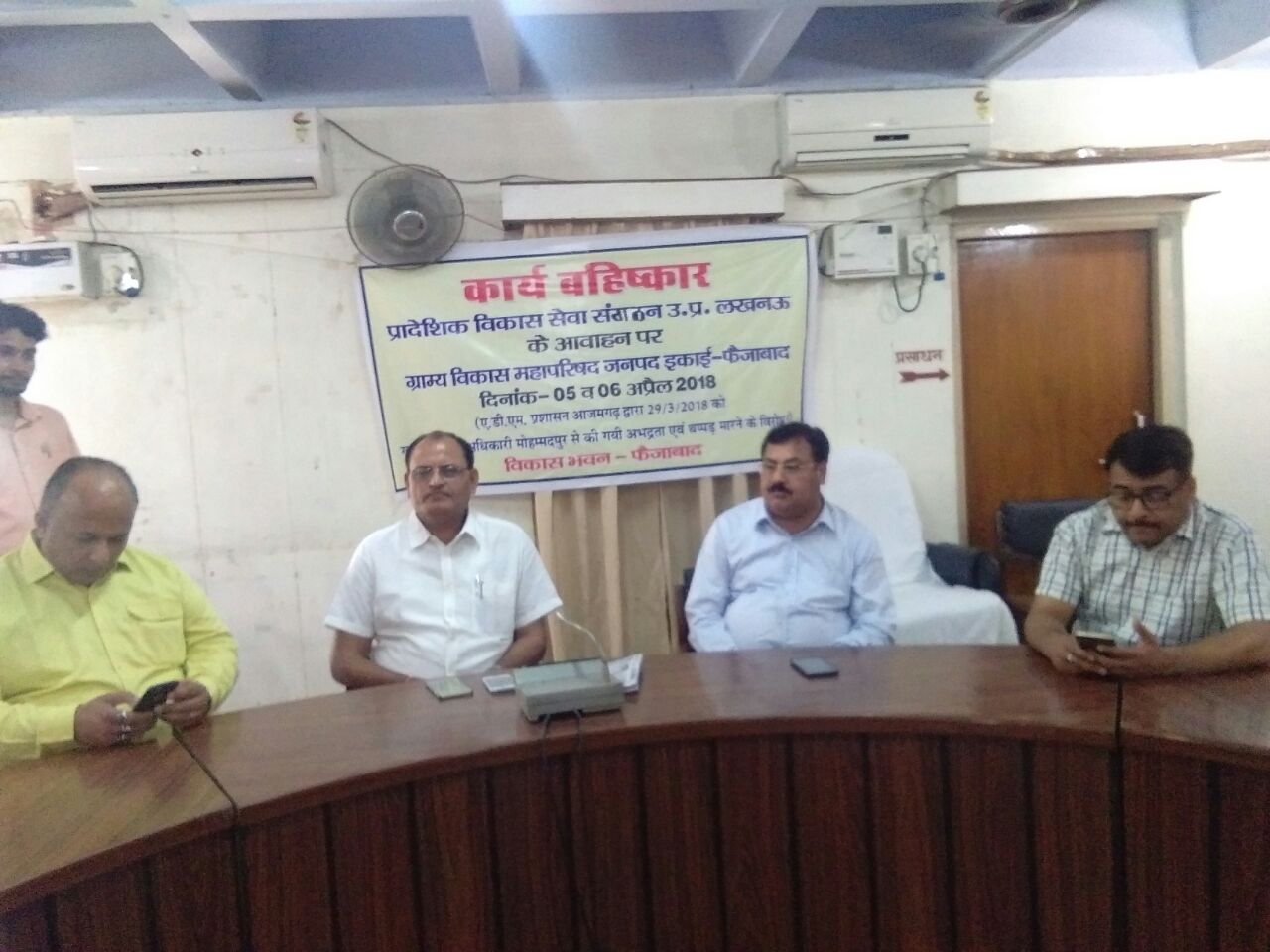 फैजाबाद|फैजाबाद ग्राम विकास संगठन मैं आज आजमगढ़ के एडीएम की गिरफ्तारी की मांग को लेकर कार्य बहिष्कार किया गया उनका साफ तौर पर कहना था कि अगर आजमगढ़ के डीएम लवकुश त्रिपाठी को निलंबित नहीं किया गया तो अभी 5 और 6 तारीख को कार्य बहिष्कार किया जा रहा है 7 तारीख से अनिश्चित काल तालाबंदी की जाएगी जिसकी जिम्मेदारी सीधे सरकार की बनती है इसलिए हम लोग की मांग है के आजमगढ़ के ADM लव कुश त्रिपाठी को तत्काल निलंबित किया जाए इसी का विरोध जताने के लिए आज फैजाबाद विकास भवन में एक बैठक की गई जिसमें मांग की गई हैएडीएमको निलंबित किया जाए यह कार्य बहिष्कार का कार्यक्रम ग्राम विकास संगठन के बैनर तले किया गया बैठक में समस्त अधिकारी व कर्मचारी गण मौजूद रहे