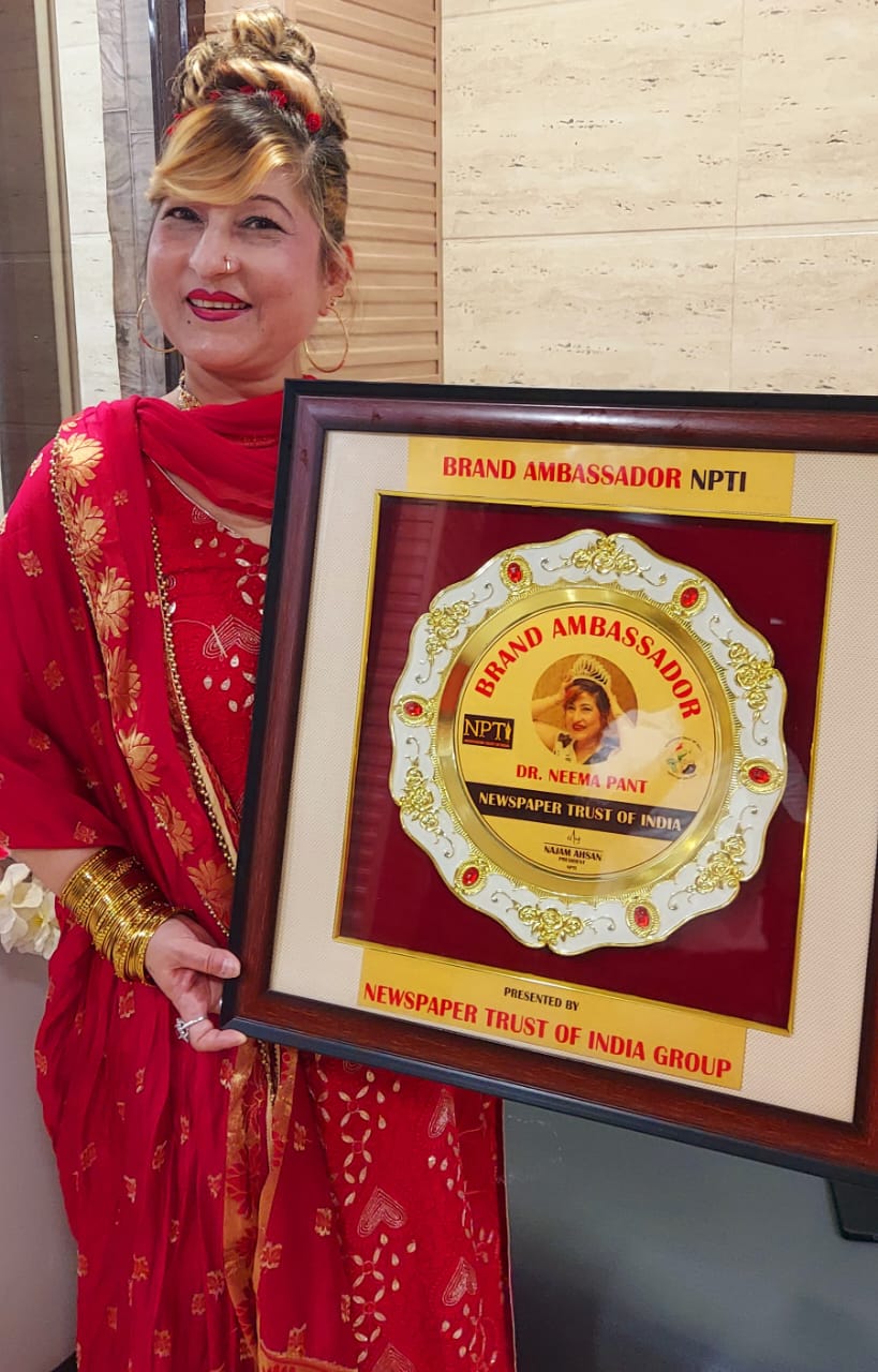 इंडिया(NPTI)का ब्रांड एंबेसडर नियुक्त किया गया।संगठन के चेयरमैन सुशील दुबे ने नीमा पंत को ब्रांड एंबेसडर नियुक्त करने का पत्र जारी किया।इस कार्यक्रम में संगठन के सभी पदाधिकारी व वरिष्ठ पत्रकारों ने शिरकत की, साथ ही संगठन के अध्यक्ष नजम अहसन ने सभी का स्वागत किया, साथ ही बुके और फूलों की माला से उनका सम्मान भी किया।दरअसल “नीमा पंत” ने 2019 में मिसेज यूनिवर्स का खिताब हासिल किया था।नीमा पंत मिसेज यूनिवर्स के साथ साथ एक बेहतरीन शायरा भी हैं।उन्होंने मंच पर बड़ी सादगी से अपनी बात रखते हुए सभी का