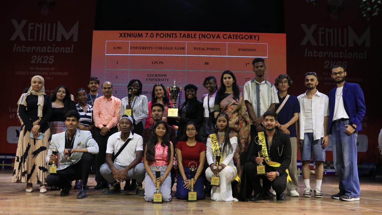 लखनऊ। लखनऊ पब्लिक कॉलेज ऑफ प्रोफेशनल स्टडीज के दो दिवसीय जीनियम इंटरनेशनल 7.0 का रंगारंग समापन रविवार को पुरुस्कार वितरण समारोह के साथ हुआ। समारोह की मुख्य अतिथि प्रख्यात कथक नृत्यांगना एवं अभिनेत्री प्राची शाह पांड्या , चेयरमैन सांसद डाॅ. एसपी सिंह एवं निदेशिका गरिमा सिंह ने विजयी प्रतिभागियों को मेडल और कैश प्राइस के साथ पुरूस्कृत किया। जीनियम इंटरनेशनल 7.0 की ट्राॅफी मेजबान एलपीसीपीएस के नाम रही। खेल भावनाओं का प्रदर्शन करते हुए मेजबान ने यह ट्राॅफी दूसरे स्थान पर रही बीबीडी विश्वविद्यालय को सौंप दी। स्पार्क कैटगरी (स्कूल स्तर) पर एल.पी.सी., राजाजीपुरम ने बाजी मारी। दो दिवसीय समारोह में तीस से अधिक प्रतियोगिताओं में पचास से भी अधिक स्कूल, काॅलेजों के दो हजार से अधिक प्रतिभागियों ने हिस्सा लिया। प्रतियोगिताओं में लखनऊ विश्वविद्यालय में अध्ययनरत आठ देशों के करीब पचास विदेशी प्रतियोगिताओं ने भी हिस्सा लिया।