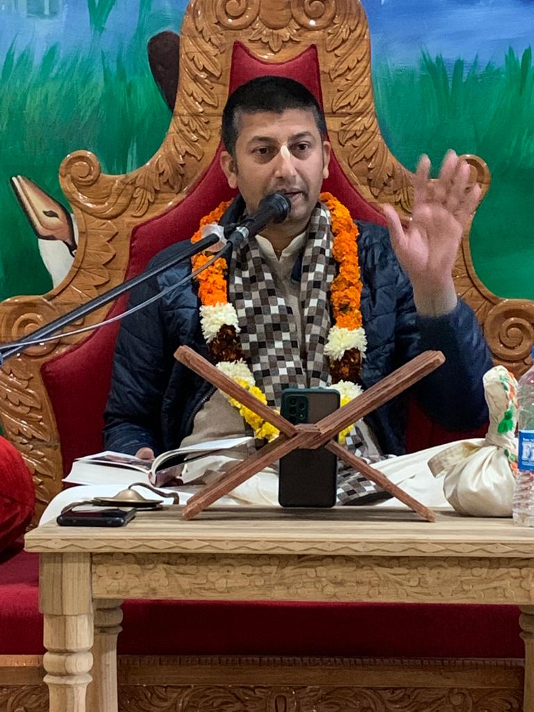 *लखनऊ l श्री राधा रमन बिहारी मंदिर (इस्कॉन), सुलतानपुर रोड,अंसल एपीआई, में आज मोक्षदा एकादशी के शुभ अवसर पर गीता जयंती महामहोत्सव धूमधाम से इस्कॉन मंदिर अध्यक्ष अपरिमेय श्यामदास जी के सान्निध्य में मनाया गया, जिसमें ब्रह्ममुहूर्त सुबह 4:20 से मंगला आरती से इस उत्सव की शुरुआत हुई तत्पश्चात श्री अपरिमेय श्यामदास ने गीता जयंती पर संध्या प्रवचन में अपने मुखारविंद से
