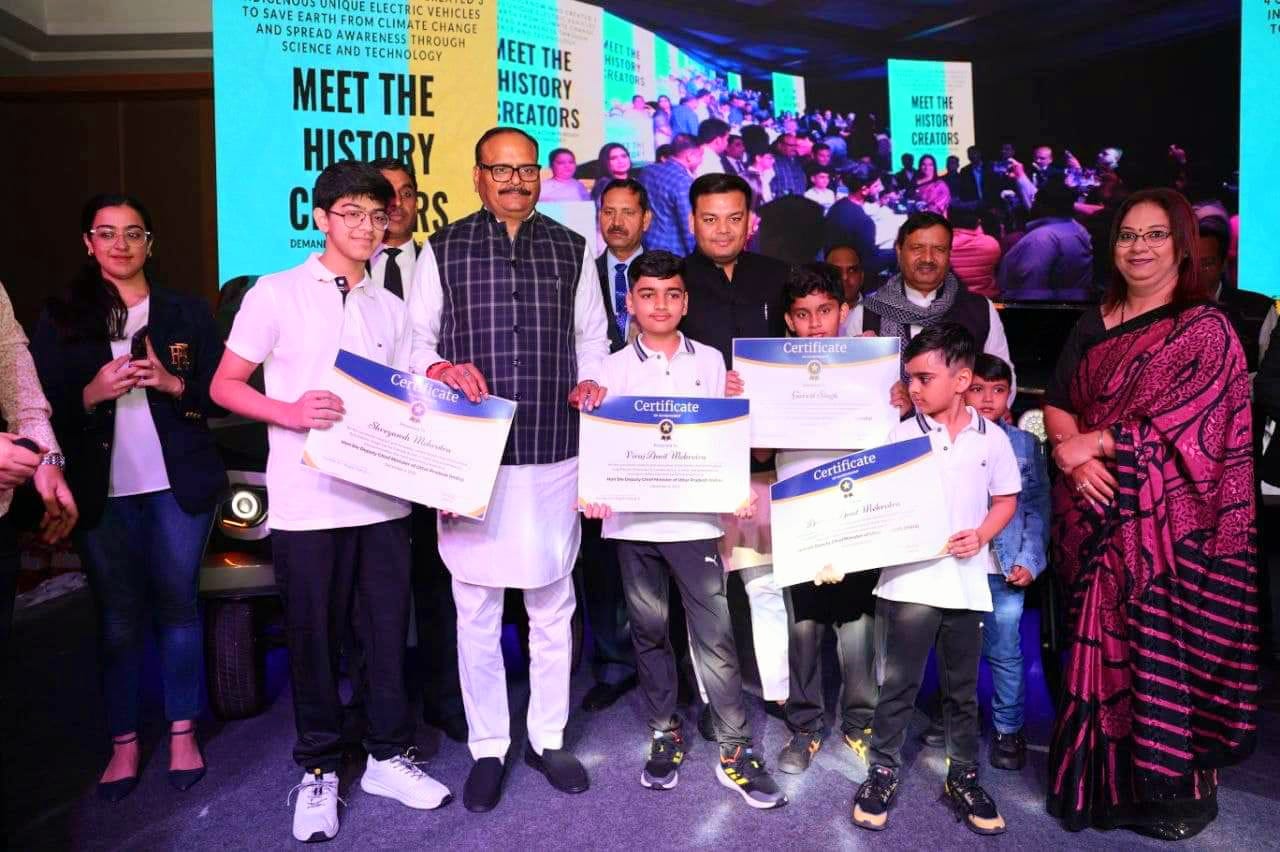 लखनऊ। पहली बार लखनऊ के 4 बच्चों ने 3 अद्भुत गाड़ियां बनाई है जो 5-जी-रेडी है और पर्यावरण को प्रदूषित भी नहीं करता है। पृथ्वी को जलवायु परिवर्तन से बचाने व विज्ञान और स्वदेशी तकनीक के माध्यम से जागरूकता फैलाने के चार बच्चों ने 3 अद्वितीय वाहन बनाए। बच्चों के उत्साह वर्धन एवं सम्मान में आयोजित “मीट द हिस्ट्री क्रियेटर” के कार्यक्रम में उत्तर प्रदेश के उपमुखमंत्री ब्रजेश पाठक शामिल हुए उन्होंने बच्चों को उज्ज्वल भविष्य की शुभकामनाएं दी, उन्होंने कहा मुझे लगता है तीनों कारे जब मार्केट में आएंगी तो बहुत तेजी के साथ इनकी बिक्री होगी और लखनऊ का नाम देश दुनिया में रोशन होगा, जिस ढंग से कार को देखकर हम कह सकते हैं कि तीनों अपनी-अपनी श्रेणी की अद्भुत डिजाइन और अद्भुत कार है।