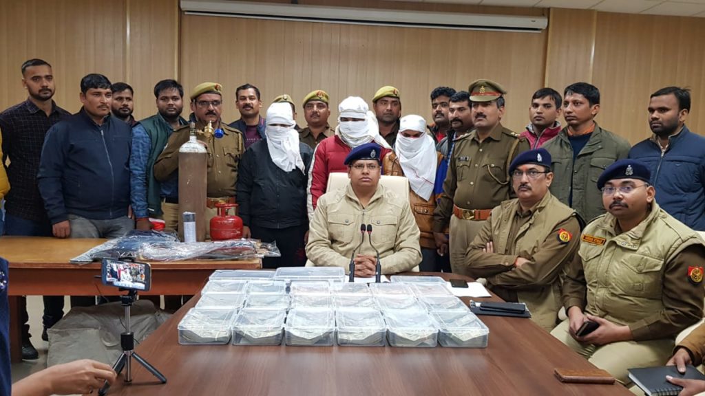 बस्ती-SBI बैंक दक्षिण दरवाजा के ATM को काटकर की गई चोरी का हुआ खुलासा 24 लाख रूपये 2 तमंचा 3 अंतर्राष्ट्रीय चोर हुए गिरफ्तार