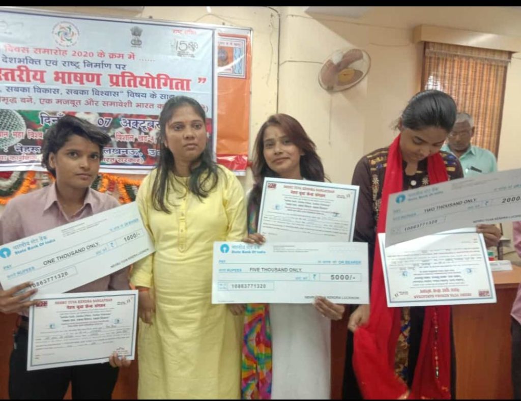 लखनऊ।नेहरू युवा केन्द्र लखनऊ की जिला युवा समन्वयक सुश्रीपुष्पा सिंह के निर्देशन में जिला स्तरीय भाषण प्रतियोगिता का आयोजन किया गया। देशभक्ति एवं राष्ट्र निर्माण , सबका साथ सबका विकास सबका विश्वास आदि विषयक पर युवाओं में वैचारिक प्रखरता एवं अच्छे वक्ता के गुण पैदा करना उनके अंदर नेतृत्व की क्षमता प्रदान करना है
