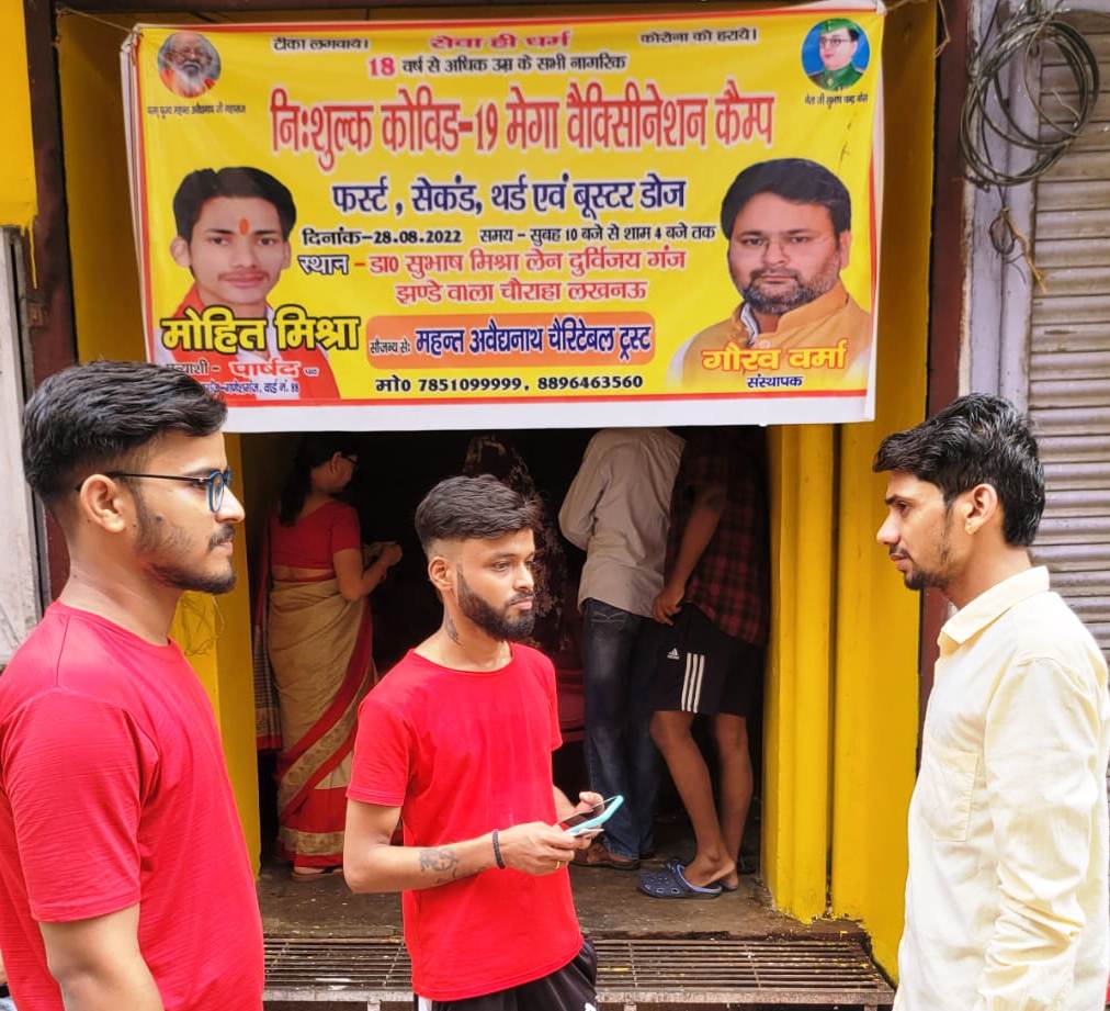 लखनऊ। महन्त अवैद्यनाथ चैरिटेबल ट्रस्ट ने आज यहां गणेशगंज बशीरतगज वार्ड के अन्तर्गत रानीगंज स्थित पार्षद प्रत्याशी मोहित मिश्रा के चुनाव कार्यालय में वैक्सिनेशन कैम्प का आयोजन किया गया। इस कैम्प में क्षेत्र के लोगों ने कोरोना से बचाव के लिये हर तरह की वैक्सीन प्रथम, द्वितीय, तृतीय व बूस्टर डोज वैक्सीन लगवायी। कैम्प के शुभारम्भ मौके पर ट्रस्ट के प्रमुख ट्रस्टी गौरव वर्मा, ट्रस्टी मोहित मिश्रा, योगी सरोजनाथ, प्रदीप पाण्डेय सहित क्षेत्र के कई प्रमुख लोग मौजूद थे। इस मौके पर पार्षद प्रत्याशी मोहित मिश्रा ने बताया कि क्षेत्र में हर व्यक्ति को कोरोना वैक्सीन लगवाने के लिये निरन्तर शिविर का आयोजन किया जाता रहेगा। आज लगाये गये इस शिविर में सुबह से ही काफी लोग वैक्सीन लगवाने के लिये पहुंचने शुरू हो गये थे। क्षेत्र के लोगों ने कोरोना वैक्सिनेशन शिविर लगवाने के लिये आयोजक महन्त अवैद्यनाथ ट्रस्ट के लोगों की सराहना की।