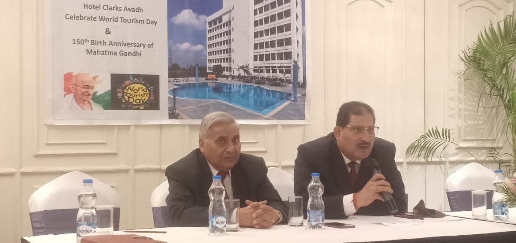 Lucknow,उत्तर प्रदेश की राजधानी लखनऊ नवाबों का शहर जो हमेशा तहजीब और क्या बोलते हैं नवाबों का शहर अदम और तहजीब ओं के लिए जाना जाता है । जो खाने-पीने से लेकर मौज मस्ती का और शेर सपाटे का अड्डा बन चुका है ऐसे ही राजधानी लखनऊ में कई ऐसे नामचीन और निजी होटल है जो पर्यटकों के लिए केंद्र बन चुके हैं ऐसे में एक बहुत ही पुराना और नामचीन होटल क्लार्क अवध जो हमेशा नामचीन होटलों में से जाना जाता है ऐसे में इस बार महात्मा गांधी के 150 वीं वर्षगांठ के अवसर पर लोगों को आकर्षक पैकेज देने जा रहा है। राजधानी के हजरतगंज से कुछ ही दूरी पर नदी के किनारे स्थित होटल क्लार्क अवध जो कि अपनी खाने पीने की चीजों के साथ ही ठहरने की समुचित सुविधा से लैस है ऐसे में पर्यटन दिवस और महात्मा गांधी के एक्सो 50 वीं वर्षगांठ पर तीन दिवसीय आकर्षक पैकेज का आयोजन करने जा रहा है। इस मौके पर होटल क्लार्क अवध के महाप्रबंधक कार्मिक प्रमोद चतुर्वेदी ने बताया कि महात्मा गांधी के 150वीं वर्षगांठ के अवसर पर होटल क्लार्क अवध में 27 सितंबर से 10 अक्टूबर तक पहली बार आकर्षक पैकेज अपने अतिथियों तथा पर्यटकों के लिए लाए गए हैं। साथ ही उन्होंने बताया कि 27 सितंबर को पर्यटन दिवस पर सभी आगंतुकों अतिथियों को वेलकम डिक्स आकर्षक रंगोली एवं खानपान के सभी आउटलेट लॉबी लेबल रेस्टोरेंट फलकनुमा रेस्टोरेंट पर 15% छूट देने का निश्चय किया। वहीं उन्होंने बताया कि दो रात और 3 दिन क्लार्क्स अवध स्पेशल के साथ एक रात मुफ्त बुकिंग सुविधा दी है ।