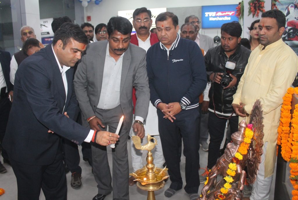 टीवीएस मोटर कंपनी के नेशनल सेल्स मैनेजर श्री मनोज सहाय ने मुख्य अतिथि के रूप में शोरूम का उद्धघाटन किया साथ ही टीवीएस मोटर कंपनी के एरिया मैनेजर श्री अम्बरीश अवस्थी व एरिया सर्विस मैनेजर श्री विक्रम सिंह शेखावत ने ऑटोमेटेड सर्विस शॉप का उद्धघाटन किया। टेरिटरी मैनेजर सेल्स श्री वैभव त्रिवेदी व टेरिटरी मैनेजर सर्विस श्री आशुतोष सिंह चौहान ने स्पेयर एंड पार्ट्स काउंटर का उद्धघाटन किया।
