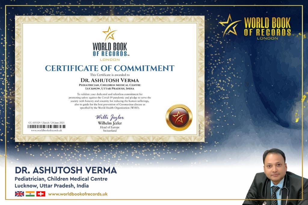 लखनऊ के जाने-माने पीडियट्रिशियन डॉ. आशुतोष वर्मा को ‘वर्ल्ड बुक ऑफ़ रिकार्ड्स’ लंदन ने किया सम्मानित