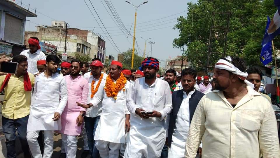 अयोध्या- गठबंधन के प्रत्याशी आनंद सेन के नामांकन जुलूस में उमड़ा जन सैलाब